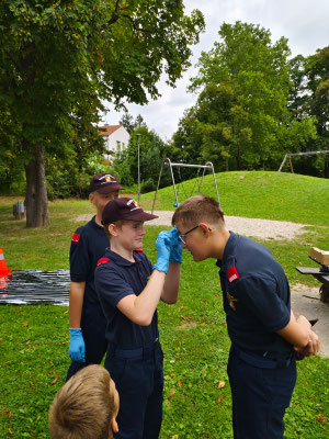 Wir nahmen mit 14 Jugendlichen Teil und verbrachten drei Tage voller Ausbildung, Spiel und Gemeinschaft. Im Mittelpunkt stand die Ausbildung für das Fertigkeitsabzeichen „Sicher zu Wasser und am Land“. Dabei mussten die Jugendlichen ihr Können beim Absichern einer Unfallstelle, Knotenkunde, Erste Hilfe, das Fahren einer Feuerwehrzille sowie bei weiteren praxisnahen Aufgaben unter Beweis stellen.