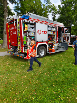 Der Lagerbetrieb startete am Freitag mit dem Einzug und der feierlichen Eröffnung. Ein besonderer Blickfang war die Lagerfahne, die von den teilnehmenden Kindern gemeinsam mit der Feuerwehr gestaltet wurde.