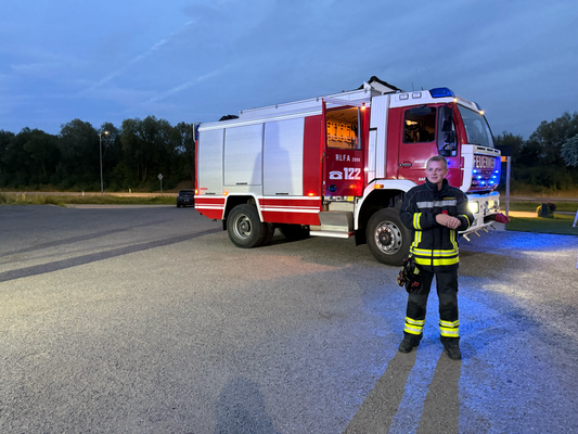 Somit rückten wir direkt vom Kirtag mit KDO, Drohne, RüstLösch, HLF1 und Last mit Kran zur Einsatzstelle aus.