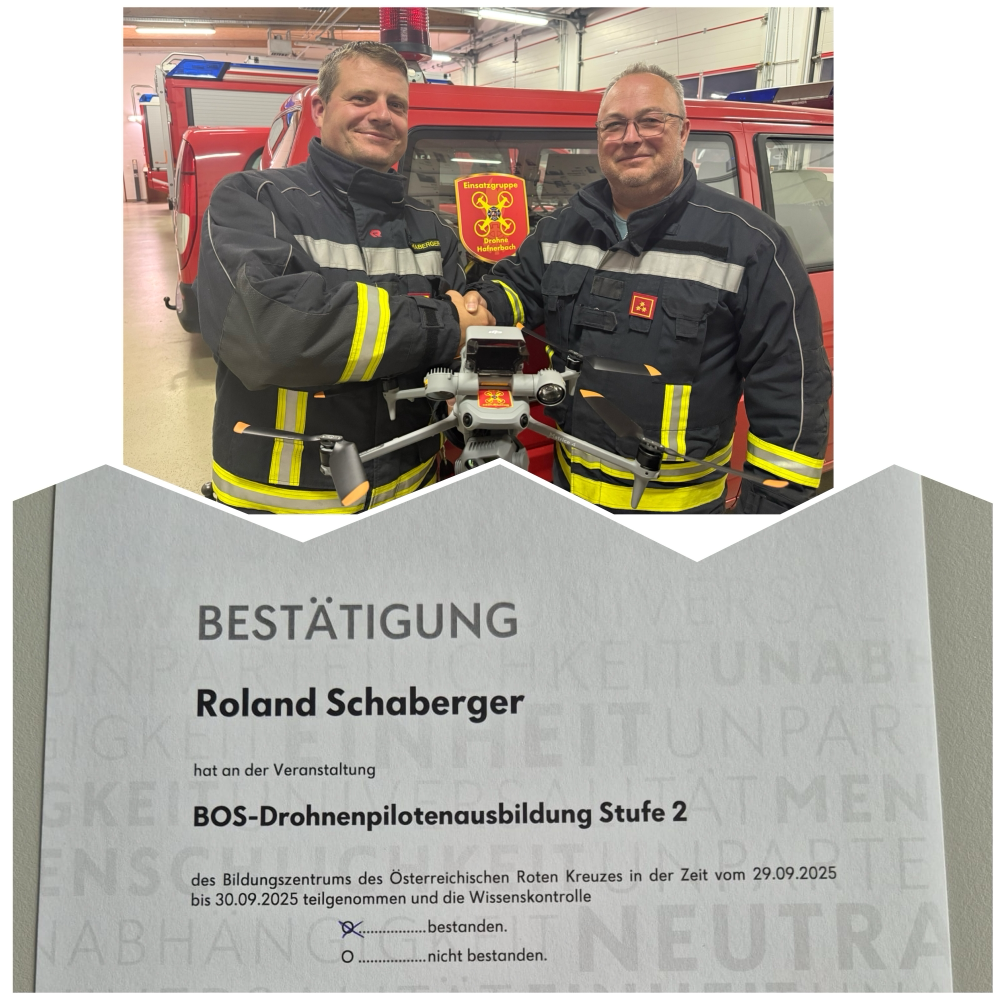 Zum Abschluss durften wir außerdem die Drohnen-Gruppe der FF Ollern bei uns begrüßen. Beim gemeinsamen Erfahrungsaustausch ging es um neue Einsatzmöglichkeiten, Techniktrends und praktische Erfahrungen aus den letzten Monaten.